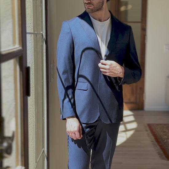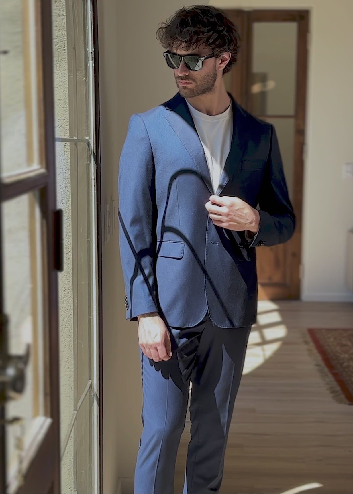 Conjunto atemporal de dos piezas, con estructura y corte slim.