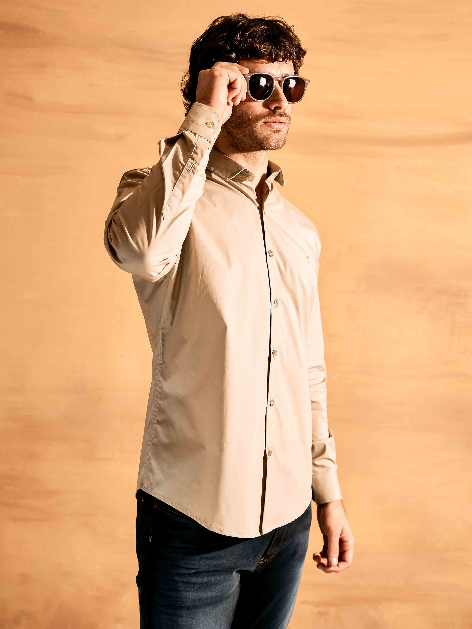 Nuestra camisa Cliff tiene infinidad de combinaciones. De cuello grande tipo italiano, en su versión de tela rasada de alta calidad 8 0/1. Es elegante, su corte regular con pinzas adapta a la silueta sin perder comodidad y su tela es liviana y satinada. Usala con jeans y bermudas denim generando contrastes de color, agregá accesorios: pañuelos, cintos, gorros, bolsos o bien lográ un look refinado con la combinación de prendas de calidad sastrera con un calce ajustado aportando aires de modernidad. La combinación de tonos neutrales genera elegancia y prolijidad.