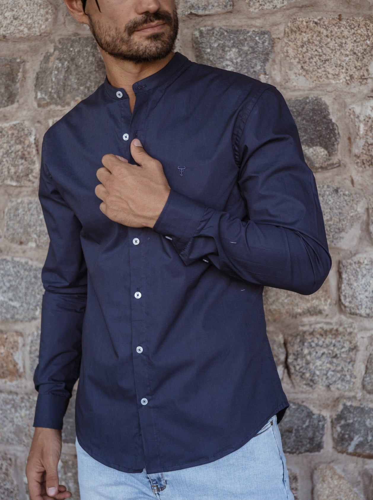 La clave de muchos de nuestros outfit es la sencillez de las prendas elegidas. La prenda superior eligiendo esta camisa de cuello Mao, en colores lisos juegan un papel fundamental en generar un look con estilo minimalista y adecuado para descontracturar. Puede ser combinada tanto con jeans, pantalones chinos, pantalones pinzados, sacos en todas sus variantes de telas pero siempre con un corte slim, para asi lograr elegancia y sofisticación.