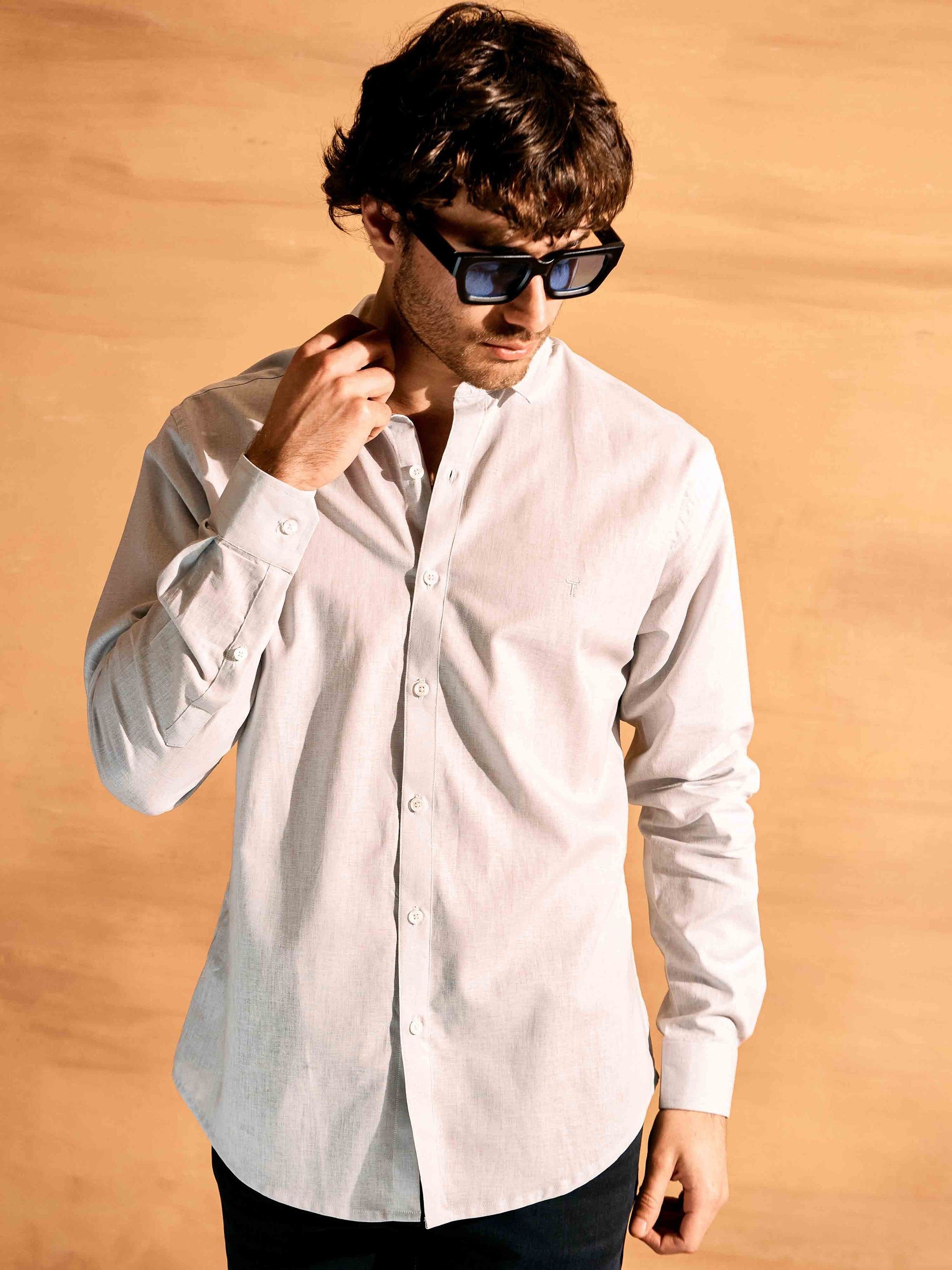 Una pieza ideal para una variedad de ocasiones, la camisa Megan se erige como un símbolo de elegancia sofisticada y discreta, que encaja perfectamente en guardarropas tanto informales como formales. Confeccionada en lino de algodón con increíble calce y caída. Mangas largas con puños abotonados, cuello italiano y carterón sin costura con botones a tono en la parte delantera.