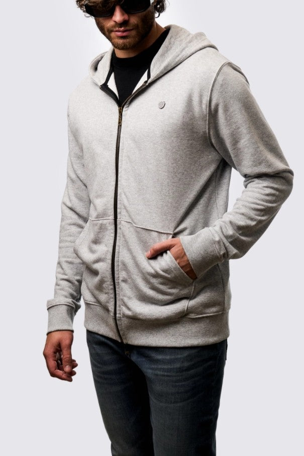 Esta campera lisa con capucha, realizada en algodón liviano, demuestra un dominio de la sutileza y los materiales. Para lograr su aspecto despojado quitamos los cordones de la capucha y logramos contrastar con el cierre metalico y su chapa con iconografía de la casa, mientras que se incluyen bolsillos canguro y puño a tono. Esta campera con capucha forrada en su interior combina sin esfuerzo con jeans y pantalones.